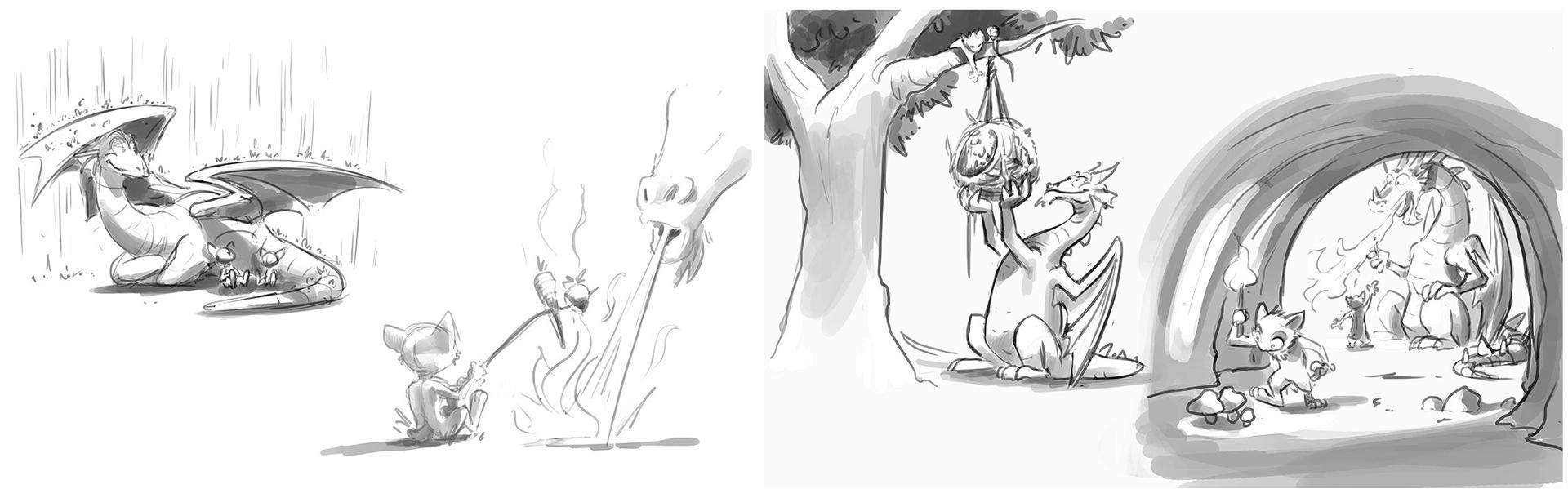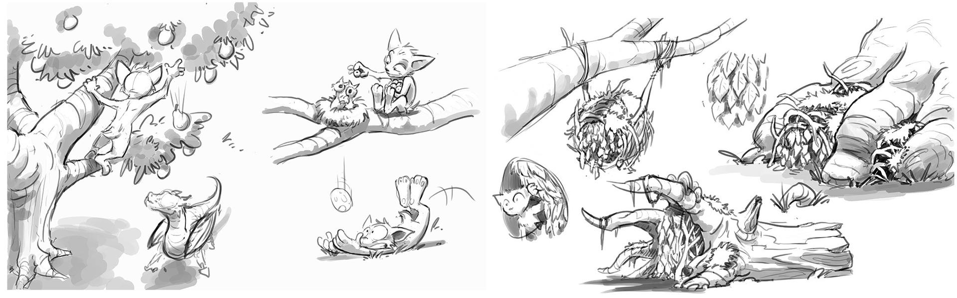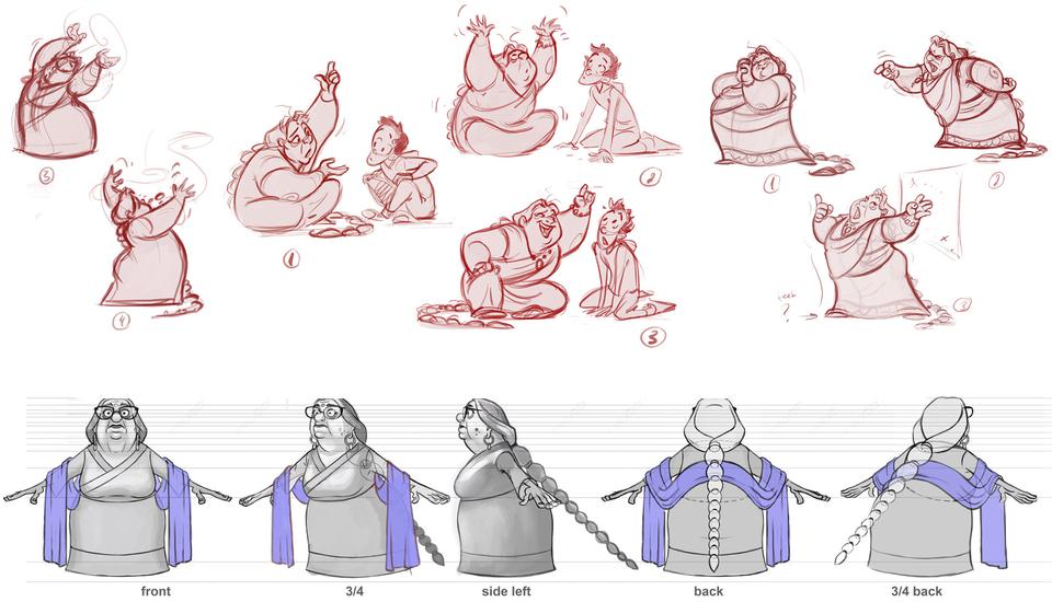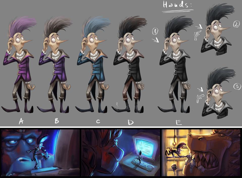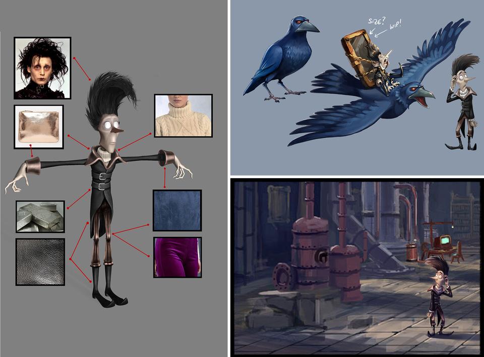 The creative goal regarding the production design was to hit the right balance between stylized and detailed designs. In order to minimize the discrepancy between stylized characters and photo-realistic set elements, the large shapes that define the space of the set were reduced to a simple, recognizable form. On the other hand, the colors in the final color script were overdrawn for each individual set from the start in order to rule out an uncanny valley effect.
